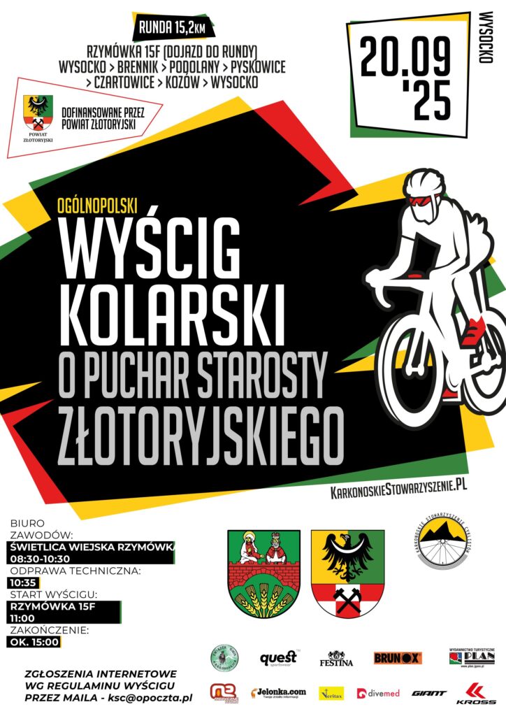 Ogólnopolski Wyścig Kolarski„ O Puchar Starosty Złotoryjskiego ” Wysocko 20 września 2025 r.28 lip, 2025 w INFO / Kalendarz / REGULAMINY / Uncategorized / WYNIKI przez Wiesław Kucab 2025-09-20-O-Puchar-Starosty-Zlotoryjskiego-Wysocko_regulaminPobierz KOMUNIKAT-Wysocko-20.09.2025-ExcelPobierz